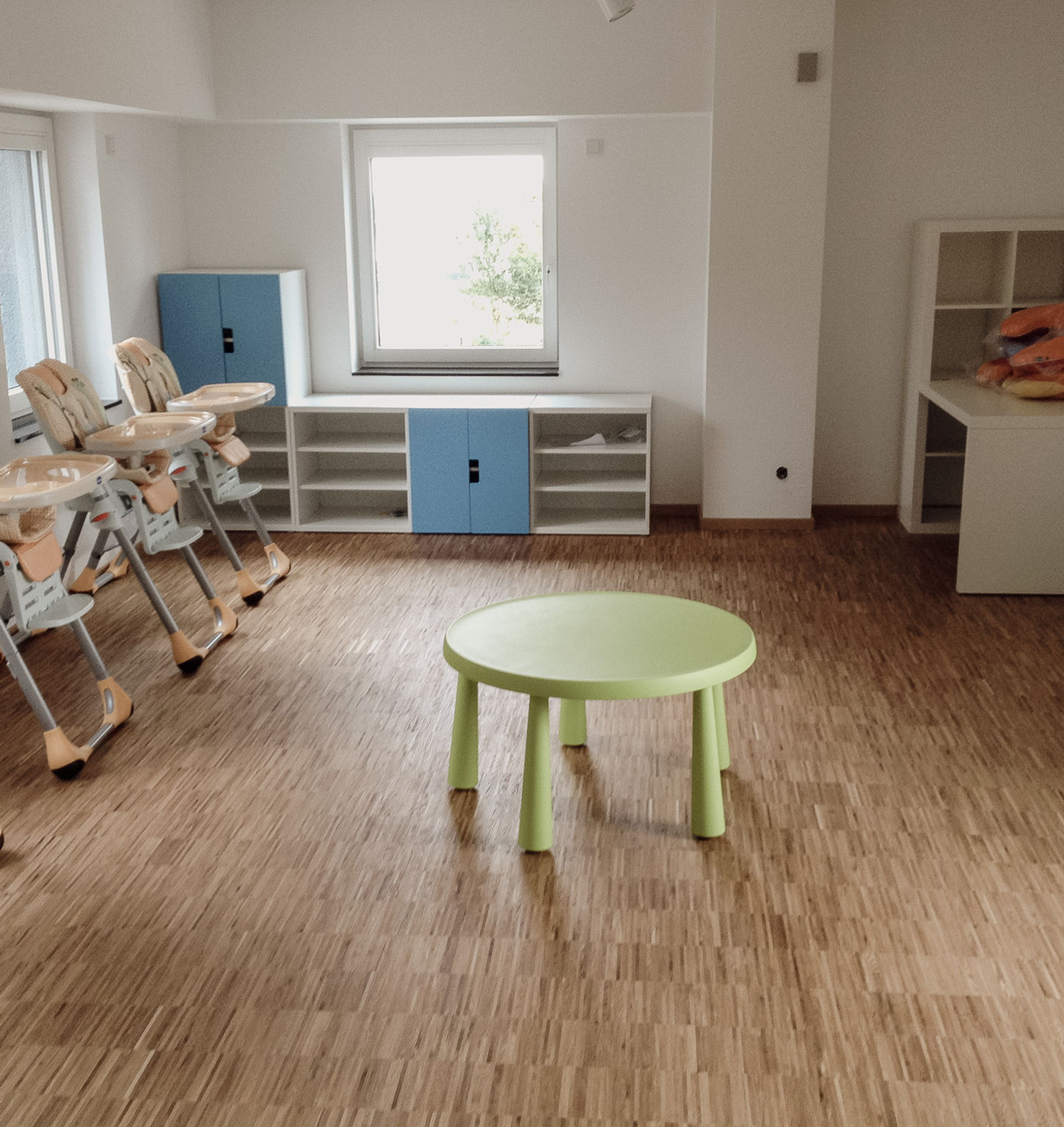 Innenausbau von einer Treppe & Sitzgelegenheiten.